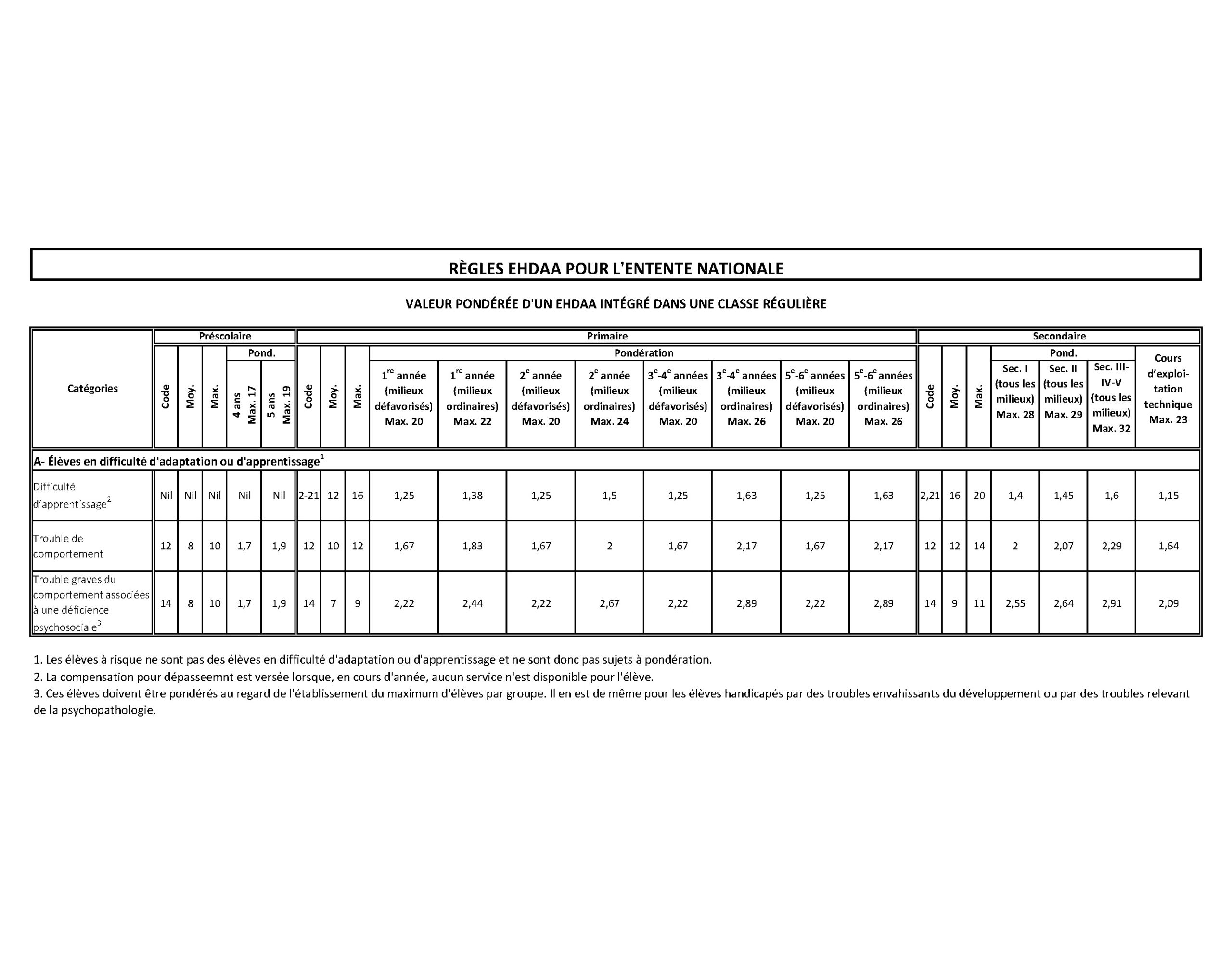 Classement des élèves HDAA